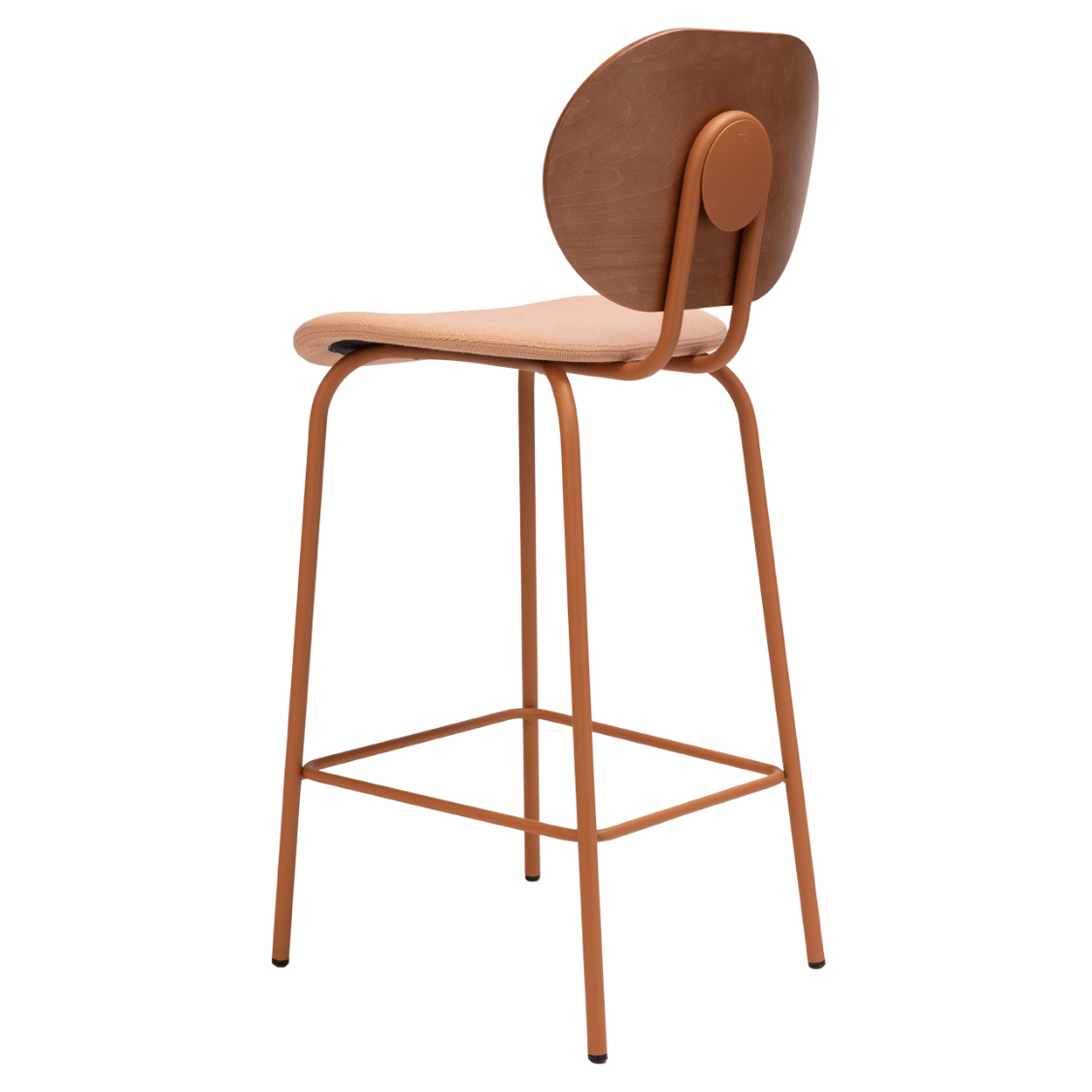 The backrest catches the eye with its oval shape and subtle connection to the metal frame, giving the bar stool a modern industrial look. Thanks to its ergonomic curves, the chair offers long-lasting comfort, ideal for guests who linger over dinner or drinks.