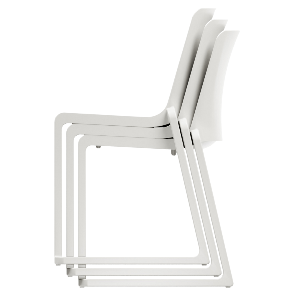 De afgeronde rugleuning sluit mooi aan op het lichaam en de licht gebogen zitting zorgt voor een comfortabele ervaring, ook zonder kussen. Dankzij een subtiele opening in de zitting kan regenwater vlot weglopen. Dat maakt hem ideaal als horeca terrasstoel.